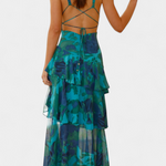 Лека, романтична и с елегантност, която се движи с теб. Роклята Валентина комбинира дълбок V-изрез с пухкави слоеве шифон, които нежно обгръщат силуета. Нейните тонове, вдъхновени от скъпоценни камъни, добавят щрих на спокойнаSophistication, идеална за лятото.