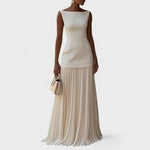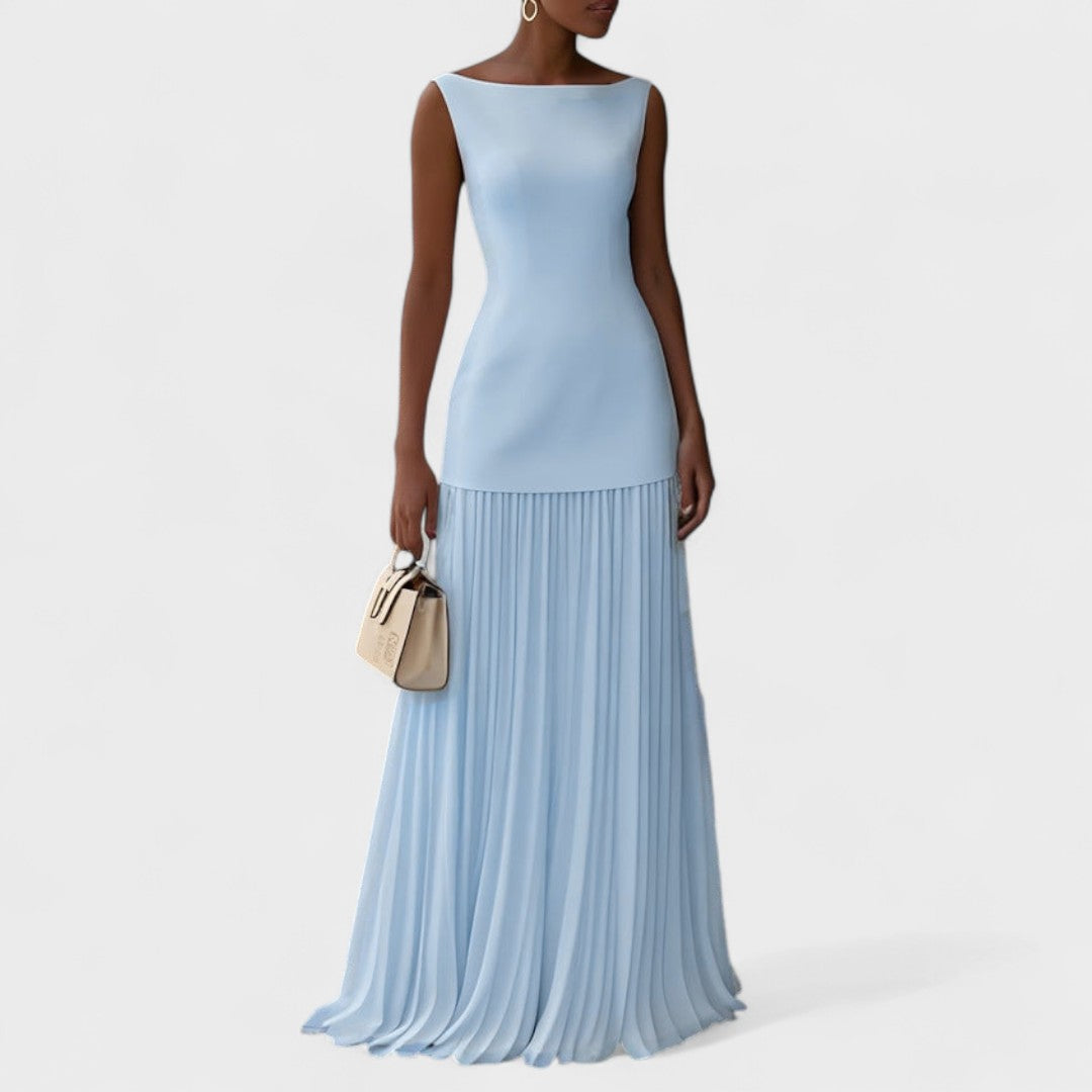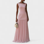 Тази луксозна рокля съчетава изискан дизайн с безупречна силуета, която подчертава женствеността и грацията. Горната част е изтънчено следваща линията на тялото, докато долната част с разкошни набръчквания създава усещане за лекота и плавно движение. Идеална е за гала събития, тържествени вечери или специални поводи, когато искате да блеснете без компромиси.