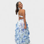 Тази дълга цветна рокля с волани внася нотка на изисканост и елегантност във всяка ситуация. Благодарение на женствения си силует и разкошните детайли, предлага безупречен баланс между комфорт и блясък. Идеална е за тържествени поводи, празненства или специални моменти, когато искате да блеснете.