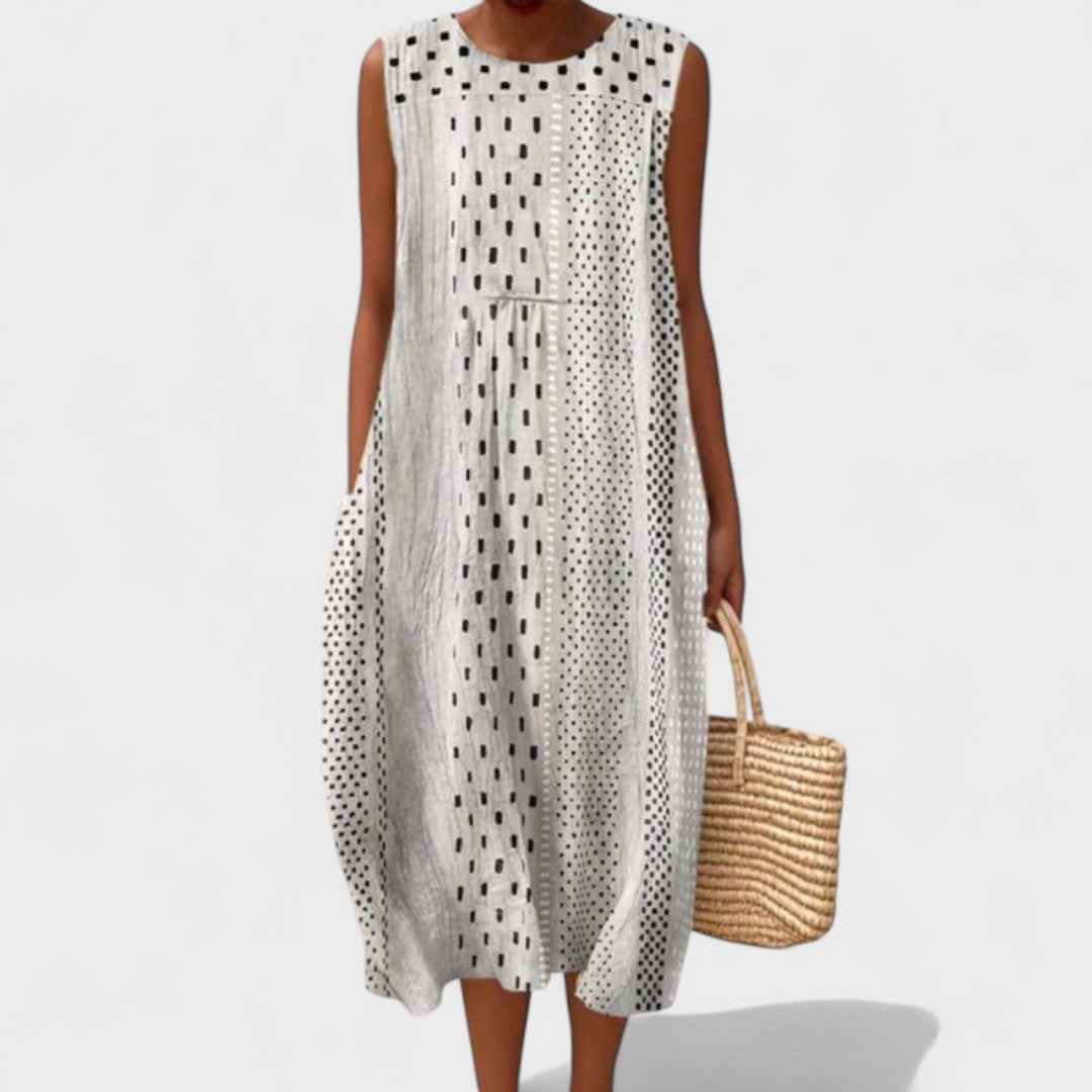 Тази лека и въздушна рокля перфектно съчетава стил и практичност, давайки ви свобода на движение и изискан вид за всички поводи. Нейният свободен крой и цветен десен я правят идеален избор за плажа, разходка из града или летни срещи.