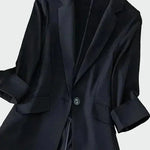 Елегантно сако с безвременен крой и модерен дизайн. Има ревери, предно закопчаване с едно копче и дълги ръкави с декоративни копчета на края. Неговият прав крой го прави идеален за бизнес поводи, но и за по-неформални моменти. Част, която добавя стил и изтънченост на всеки аутфит.