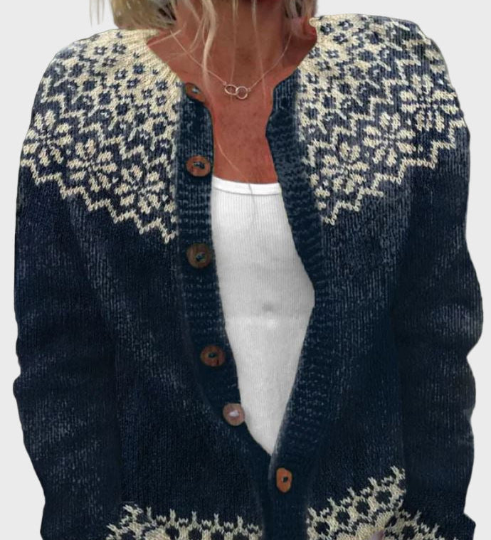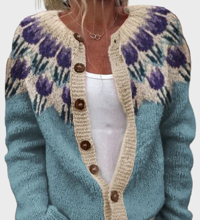 Плетен Жилетка с Цветен Узор