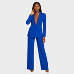 Този изискан комплект сако–панталон е идеален избор за жени, които искат да оставят силно впечатление. Перфектният крой подчертава фигурата, докато класическото сако и елегантните панталони създават вид, който излъчва изтънченост и модерен стил. Подходящ е за бизнес срещи, специални поводи или вечерни излизания, когато искате да блеснете.