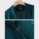 Този сложен комплект от две елегантни компоненти – сако и панталони – представлява перфектната комбинация от стил и професионализъм. С класическия си крой, който подчертава линията на тялото и практичните детайли, този комплект е идеален за бизнес срещи, формални събития или вечерни излизания. Вечният дизайн позволява лесно комбиниране с различни модни аксесоари.