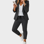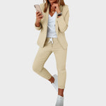 Този комплект съчетава вечен дизайн с висококачествени материали, предлагащ комфортен, универсален вид, който оставя добро впечатление. Лесен е за комбиниране и се адаптира към различни поводи.