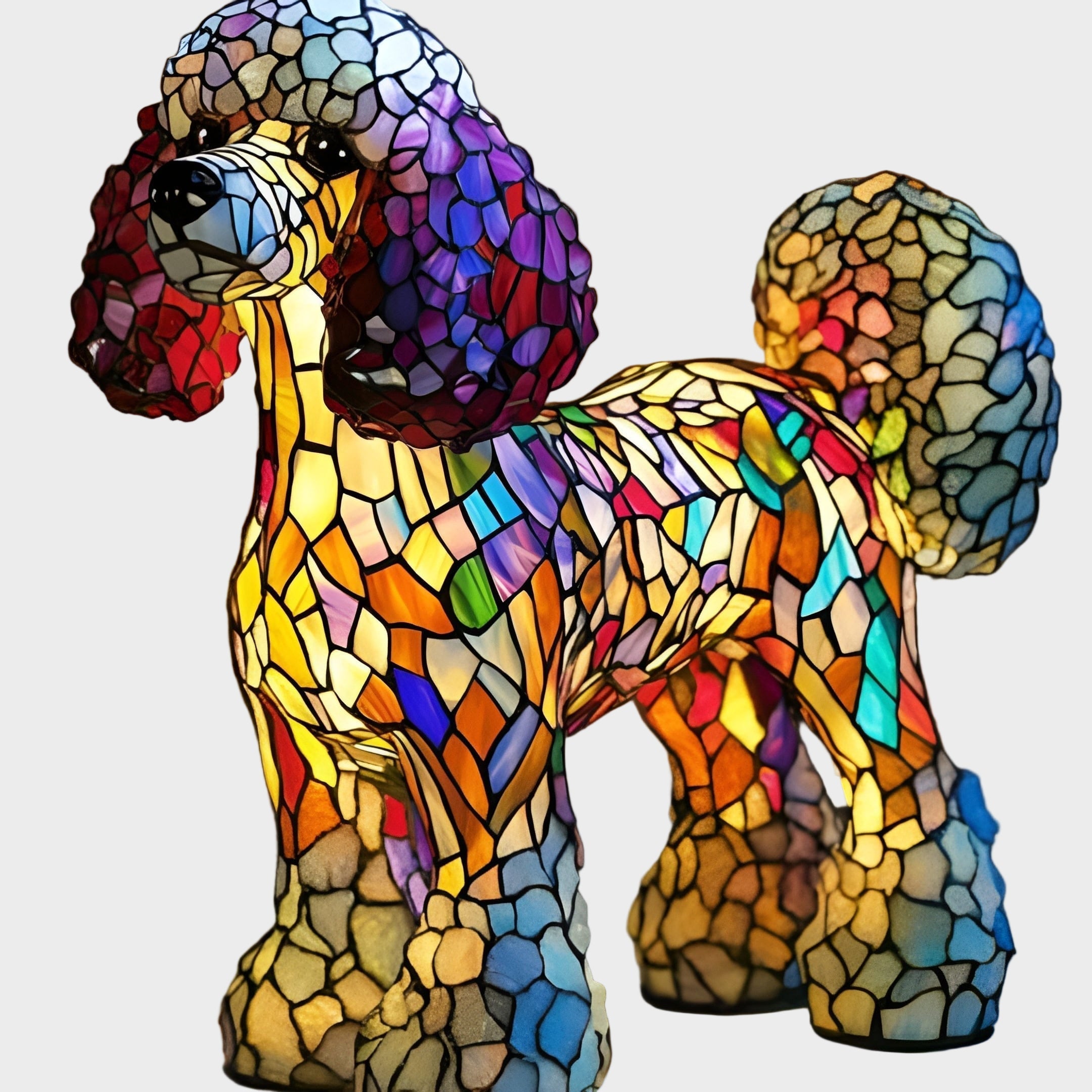 Шикозна и грациозна, тази лампа с пудел блести с цветна смола. Нейното елегантно сияние добавя изтънченост и топлина на всяка стая.
