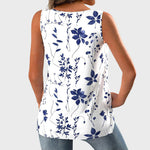 Насладете се на свежестaта на лятото с тази безръкава тениска на бяла основа, украсена с сини цветни мотиви. Нейната небрежна силуета предлага комфорт и свобода на движение, докато V-образното деколте добавя женственост и елегантност. Идеална е за ежедневни и летни комбинации.