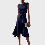 Защо нашите клиентки обичат наборната асиметрична миди рокля Катарина: