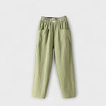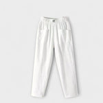 Изработени от лен, тези панталони съчетават свежестта на естествените материали с прост и елегантен дизайн. Правият и леко летящ крой позволява удобно носене, докато еластичният колан осигурява перфектно прилягане. Основен елемент за по-топлите дни, перфектни за неформални и изискани комбинации едновременно.