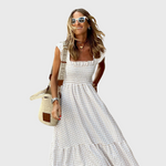 Летна макси рокля на квадратчета с смок горна част