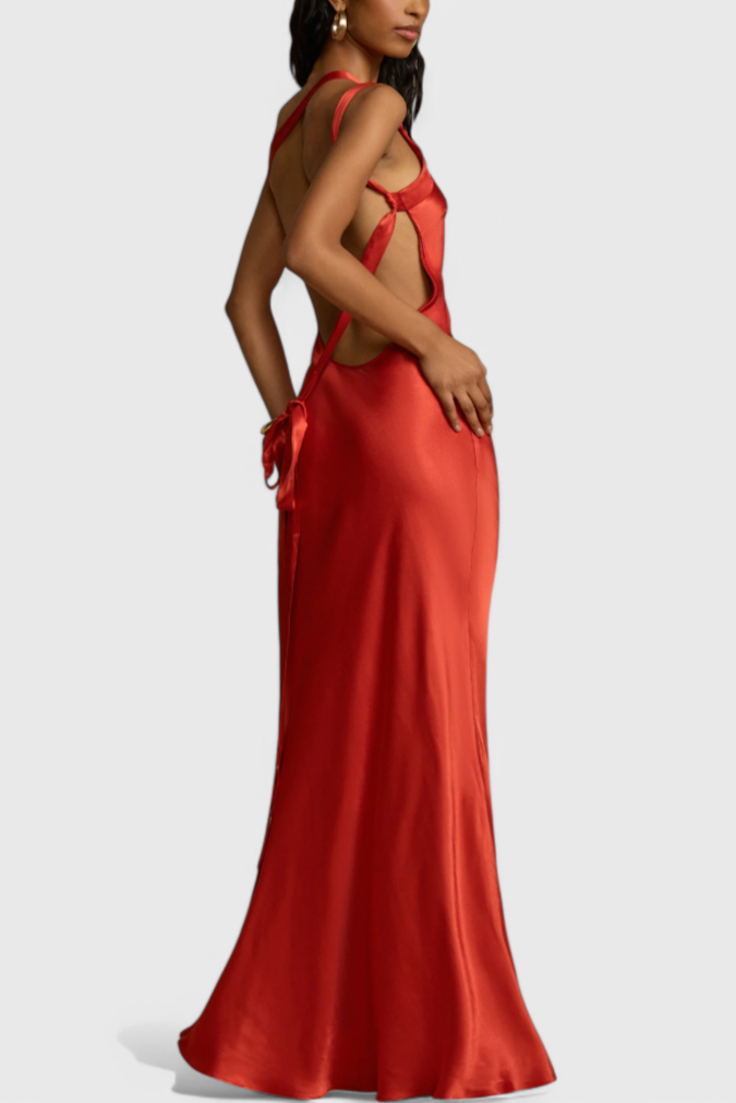 София Макси Рокля с Диагонални Презрамки и Открити Гърба