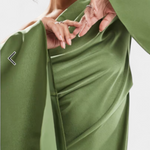 Впечатляваща и изискана, роклята Франка комбинира дизайн с едно рамо с флуидна силуета, която балансира драматичността и елегантността. Нейният асиметричен деколте стилно обрамчва фигурата, докато оформената талия подчертава силуета, а флуидният ръб придава естествено движение. Част, замислена да се откроява с клас в всяка специална повода.