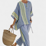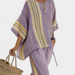 Комплект от ленен бамбук с очарователна лавандула и детайли в жълти ивици