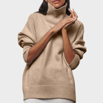 Тази блуза с висок вратник е перфектната дефиниция на удобството в комбинация с елегантност. С разкроен силует и детайли от рибена тъкан, лесно се вписва в различни стилове – от неформален до изискан.