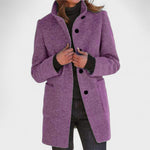 Класическото вълнено палто с ретро копчета съчетава изискан силует и съвременна функционалност. Повишеният як защитава от вятъра, топлата подплата и здравата тъкан осигуряват комфорт, а правите линии и подредените шевове придават елегантен, спретнат вид. Практичните странични джобове и дължината до средата на бедрата го правят идеално за работа, градски разходки и вечерни излизания.