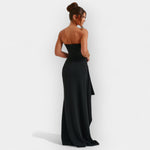 Изработена от фин материал, тази дълга рокля подчертава женствеността по деликатен начин. Идеална за тържествени поводи, предлага перфектно прилягане и усещане за лукс във всеки движение.